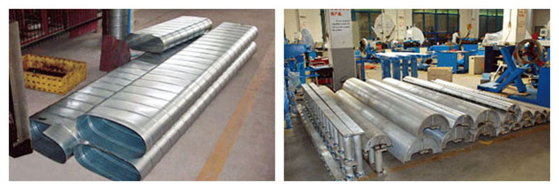 橢圓風(fēng)管機(jī)能夠?qū)⑵交痛植诘穆菪龍A管制成平直和橢圓的管子。PLC電腦控制,并且LCD操作面板儲存了所有參數(shù)以便在實(shí)際必要操作過程中能簡單的回憶起來。